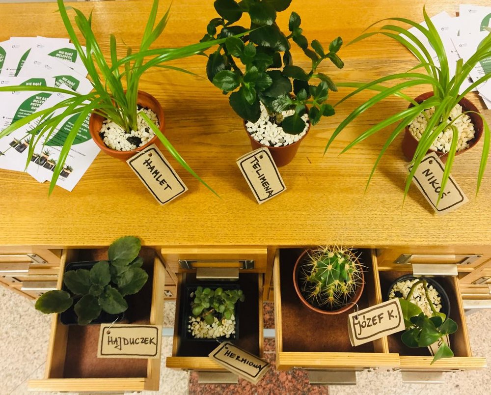 Każda z roślin przeznaczonych do adopcji posiada swoje literackie imię, nadawane przez bibliotekę lub przez dotychczasowego właściciela.